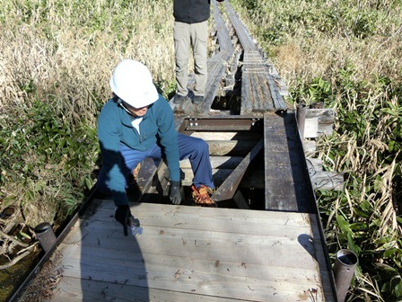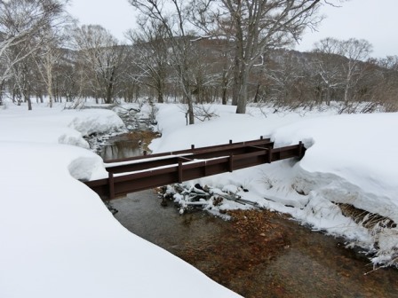 川にかかる橋の橋板も雪の重みに耐えられないため、撤去です。