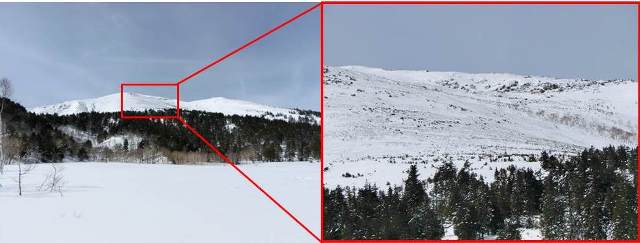 例年この時期は真っ白だという山肌は、岩や木々が顔を出して黒く見えます。