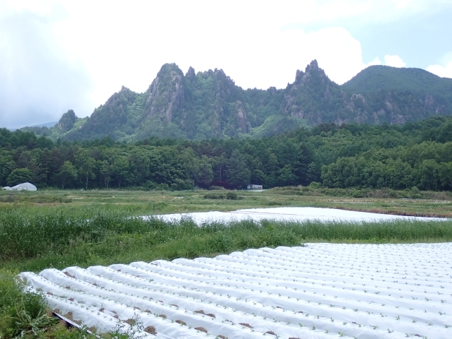 先日、令和7年6月19日(木)に長野県川上村の廻り目平・毛木平・三国峠を巡視しました。廻り目平に向かう道からは高原野菜の畑が一面に広がる上に屋根岩の切り立った山容を望むことができ、また毛木平の近くではベニバナイチヤクソウの群生も見ることができました。