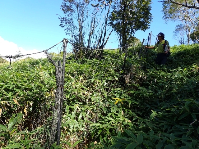 この日の巡視では、稜線近くに設置している防鹿柵の点検を行いました。