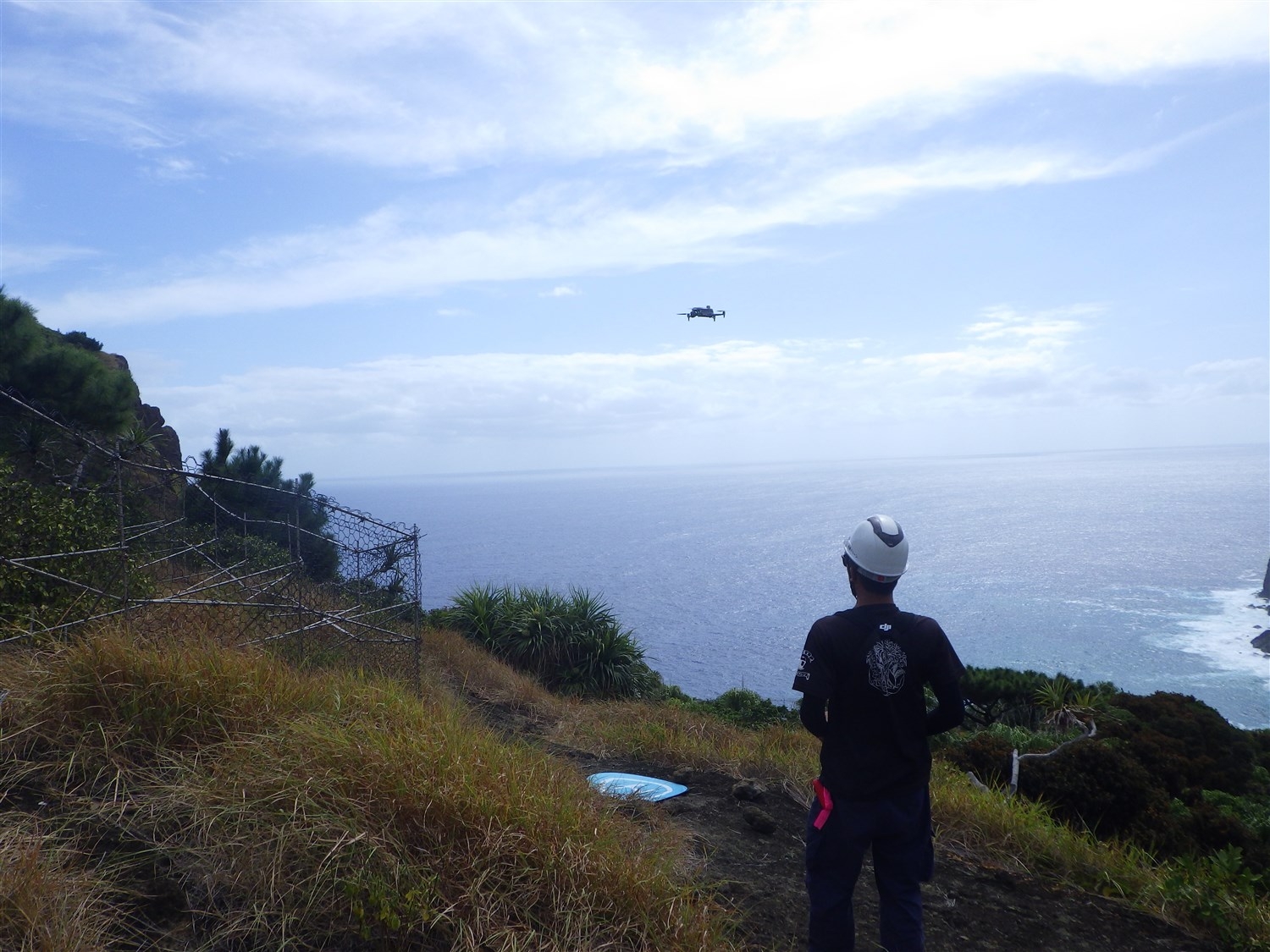 今回は、父島東平自然再生区で行った「ドローンによるノヤギ・ノネコ柵の点検試行」についてご紹介します。