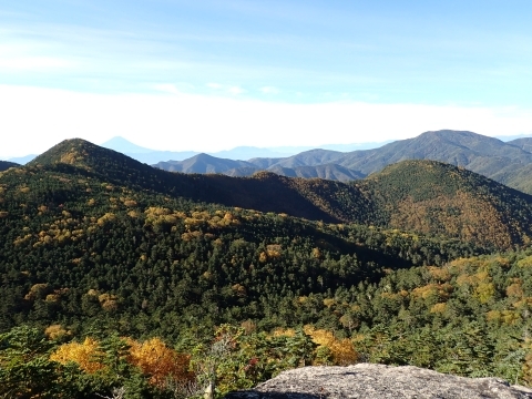 色づき始めた奥秩父の山々の向こうに富士山を見ることができました。