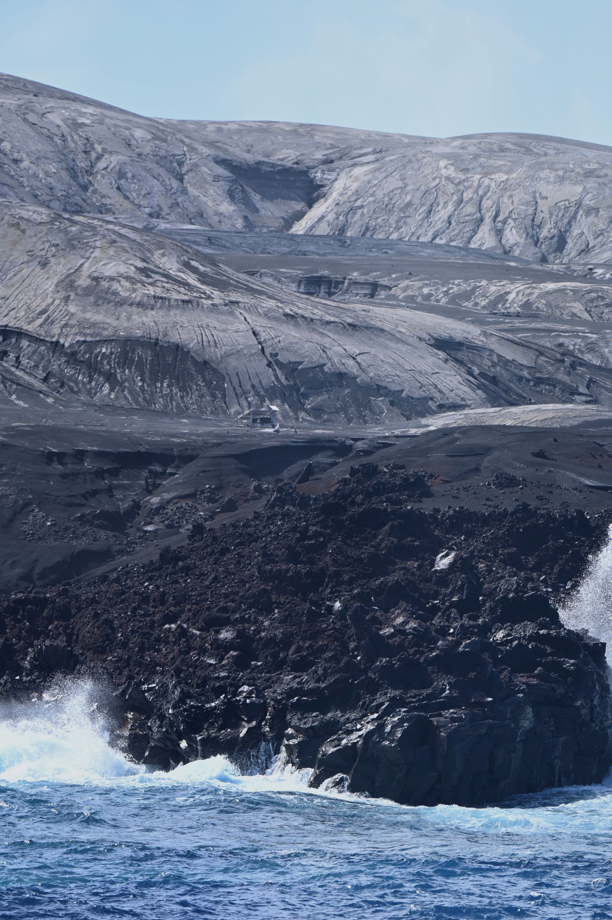 北部には、今年7月の西之島総合学術調査の際に設置された、衛星通信装置や無人探査機を使用して継続的なモニタリングをするための拠点も見ることができました。