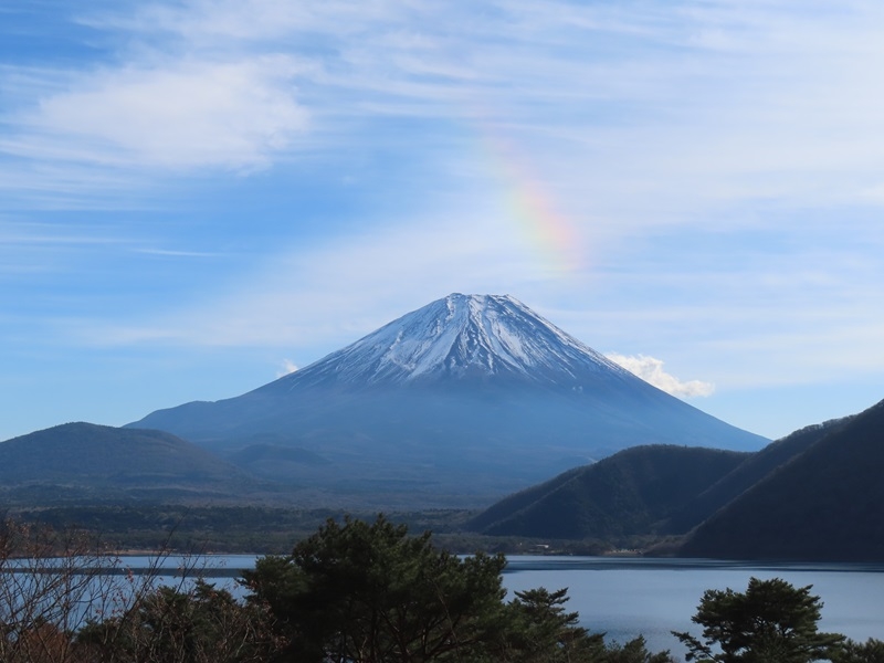 12月のある日、わずかに富士山の山頂に虹が掛かりました。山でゴミを拾ったり、自然に対して何か良い事をして徳を積むと、ときどき少しだけ自然からご褒美がもらえると、僕は信じています。野鳥に出逢えたり、雲が晴れて眺望に恵まれたり。このときはごみ拾いをしました。でも徳は積み足りず、ちょこっとだけのご褒美です。もっともっと徳を積まなくっちゃ!!