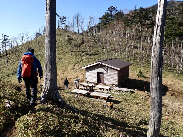 木賊山と西破風山の間にある笹平には、破風山避難小屋が建っています。