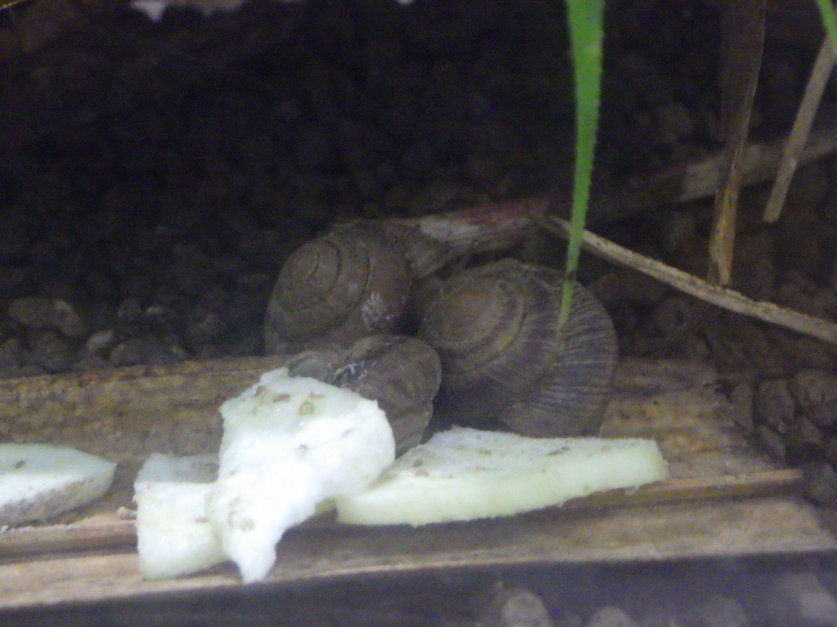 A:ウスカワマイマイ、ミヤコマイマイ、オキナワベッコウマイマイなどの可能性があります。いずれも外来種です。