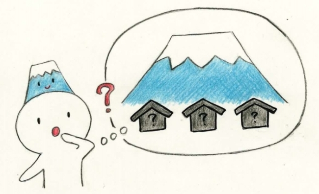 ①ふじちゃんのおうちは、富士山の近くにあります。