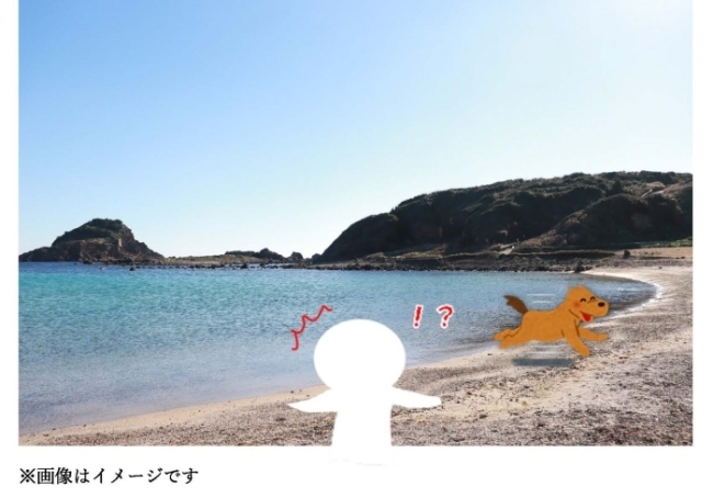 よく見ると、犬にはリードがついておらず、カニをつついたり、波に近づいたり、自由に遊んでいます。
