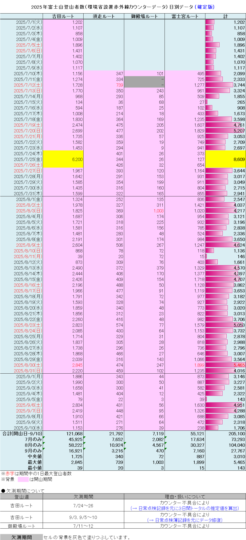 2025年夏期の富士山登山者数について [随時更新] (確定版)