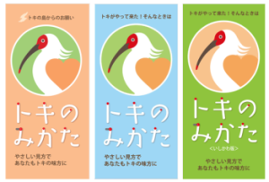 このトキとの共生ルールをもとに、野外でトキを観察する際に気を付けていただきたい事項をわかりやすくまとめたリーフレットが「トキのみかた」です。地域別の版があります。トキの生息地・飛来地を訪れる前に、ぜひご一読ください。