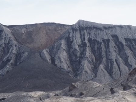 - 過年度から継続して、火砕丘の主火口及び山腹からの噴気を確認しました。また、火口底には灰白色の火口湖が存在し、蒸気が上がっている状況を確認しました。