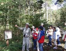 朝霧高原ふれあいの森を植物や動物の足跡を観察しながら歩きました。この地域で行われている「育成林」「放置林」の管理について学びました。
