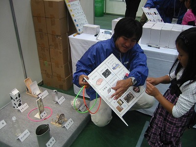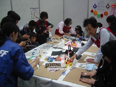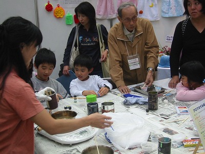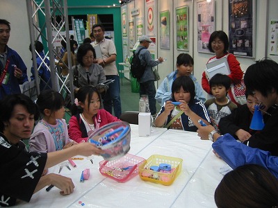 ブーススペースにおいては、学習ゲーム(買い物ゲーム・エコ学習わなげ)により子どもたちにも楽しく3R等について学んでいただきました。また、牛乳パックを利用した小物入れ作り、エコアロマキャンドル作り、マイ箸のための箸袋作り等のワークショップを開催し、3Rに役立つ活動を多くの方に体験していただきました。また、県内の各主体の取組をパネル展示により紹介するとともに、展示内容を題材としたクイズラリーを行い、参加者の方に積極的にパネル展示をご覧いただくように工夫しました。